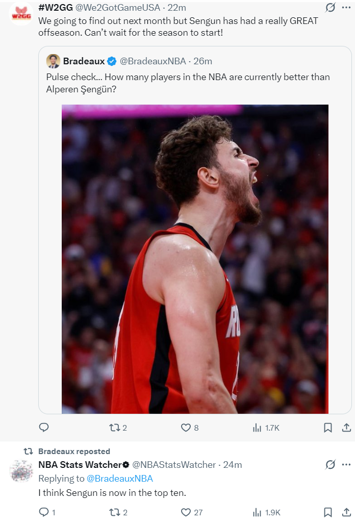 美媒W2GG:我们将在下个月揭晓结果,但森古恩这个休赛期的表现确实非常出色。真迫不及待想看到新赛季开始啦!